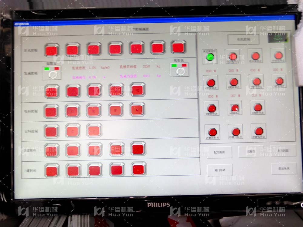 3.自動化控制系統由PLC,工業計算機及工業組態軟件等組成,操作臺帶模擬圖形,鼠標點擊即可完成配方設置及助劑進料等操作。